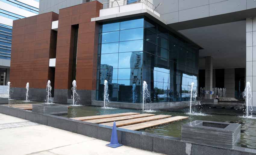 The three towers of this complex are staggered horizontally and vertically, giving each one visibility from the road. The building is a multi-tenant complex that is based on the concept of creating a congenial campus-like environment, where every tenant can share facilities, common areas and still retain their privacy.
